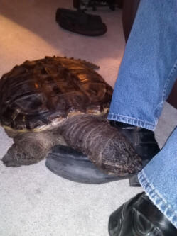 We own a 45 lb. pet snapping turtle. Gimpy T.Turtle (find him on
