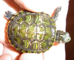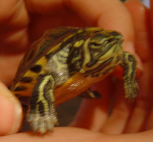 <Red eared sliders can inflict a nasty bite when they are picked up.