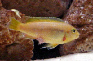 Electric Yellow with Damaged Jaws 10/10/05 Hey crew! I have a small issue (I hope) going on with one of my Electric Yellow Cichlids. 1st Parameters of the tank 55 gal, Ammonia 0, Nitrite 0, Nitrate <10, pH 8.4, GH 9, dKH 125, Temp about 81, Tough to keep cool this summer. Substrate is a crushed coral, shells, etc., sold as Cichlid Coral (it was wet in the bag). for decor I have about 35lbs of lace rock. Filtration: Marineland 2x bio-wheel 350, Aquaclear 50 for running carbon. Mates in the tank ... 3 x Electric Yellows, 1x Acei Cichlid, 1 bumblebee, 2 Assorted Cichlids and a Synodontis eupterus. They get fed once a day and skip a day >1 a week maybe every 10 days or so. They get Spirulina flake and "soft pellets" along with Zoe soaked Mysis, Spirulina Brine, "emerald entree", Ocean Nu Veggie mix (frozen), and fresh Zucchini, and Nori. (on a rotating basis obviously... Spirulina every feeding. I noticed one of my EY was looking a little smaller and thinner than the others, upon further inspection it seems that her (?) jaw is functioning properly, the lower area under the jaw seems to be protruding down and outward forcing her mouth to stay almost shut. Tonight I noticed that she is not able to eat, she is interested but gives up at the last second when attempting to eat. I can't see anything in her mouth, however she is still quite small at about 1.5->2 inches. Do you have any Ideas. I have a QT set up running a cycled filter and I did a water change tonight and used about 6 g of display tank water in the 10 gal qt tank. When I went to get her out she was not willing to come and I did not want to stress her. I will try again tomorrow. Any Ideas for (catching) would be helpful as well. Thanks in advance for any ideas. Sean P. < When you turn out the lights you can go back in the tank after about an hour and catch her sleeping. When cichlids fight they often lock jaws. Sometimes a jaw gets broken and this inhibits a fishes ability to eat. The jaw may heal up but will probably never function the same. isolate her and feed her presoaked pellets.-Chuck>
