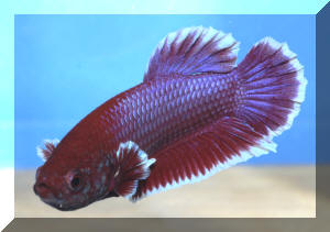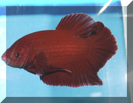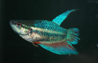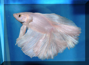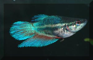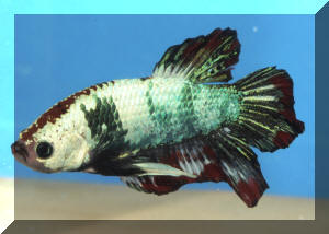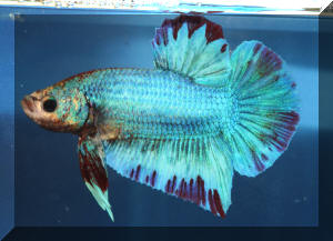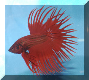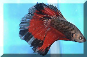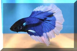 Selection: 1) Source. The male Bettas offered in retail outlets are generally fine... until you become exposed to the more carefully selectively bred, reared and cared for ones from private breeders. If you want to be "happy" don't look beyond retailers tanks here. The inexpensive ones there are beautiful, typically hardy... Should you delve into what more the hobbyist, specialty breeder's have to offer, you may well get hooked, becoming a Betta fanatic! You've been warned. 2) Apparent Health: Easier to determine with these fish than most others. Alertness, and openness of finnage are extremely important. Don't buy a "sulking", clamped fin Betta. Look closely at the fins and skin of potential purchases. Often the twin scourges of external parasites velvet (oodiniumiasis) and/or ich (ichthyophthiriaisis) can be seen on infested Bettas. If any males display these ectoparasites, buy NONE of them. Small tears in large fins are no real problem, and generally repair quickly of their own accord. However, evidence of rotting negates acquisition. 3) Size/Age: Take care to not pick out "the biggest" individuals. Bettas are not long-live animals, most perishing within two years of birth... and being offered for sale at a few to several months of age. Environment Physical: Though displayed in simple to novel bowls, and celebratedly tolerant of up to appalling, deteriorating water conditions, Bettas are best kept as other tropical fishes. BETTA'S ARE TROPICAL FISHES.... LIKELY MOST DIE DIRECTLY AND INDIRECTLY FROM THE ILL-EFFECTS OF CHILLING. In an aquarium, with purposeful filtration, steady heating, and regular maintenance. Yes, Bettas can be kept in bowls... but these should be large, not-filled to the top (to prevent jumping out), kept in warm, stable circumstances, and cleaned regularly, at least every two weeks. Water Quality: One chief cause of their loss is "chilling". Bettas are tropical fishes that live in waters of about the mid seventies to mid eighties Fahrenheit in temperature. I wish the folks who make, promote the use of jars or worse, the containers that hang on walls could be made to experience the thermal changes that Bettas face there. An ideal Betta set-up includes live plants, warm water (low eighties F), not much surface disruption (no splashing hang on the tank filters or above water canister filter discharges), a tight-fitting cover to prevent jumping... (probably the third most common cause after starvation, and chilling) and cool-air drafts. of moderate hardness and neutral to slightly acidic pH (the last two are not extremely important to keepers who have well-acclimated specimens). Behavior Territoriality: About Fighting, Betting: Betta splendens derives its common name for the long-standing practice of people in Thailand using it in competitive bouts bet on by mainly men. These "fights" are often staged in bars, other social settings with two short finned (fighters aren't bred for beauty) Bettas placed contiguously with a panel placed between them that is later removed, allowing the combatants to engage in a semi-ritualistic battle of fin biting and tearing. Combatants are rarely killed outright, and a referee/bookie judges when one has "lost", the other declared the winner. It is said that in times past, some wagers included bettors wives, children, even themselves into servitude! Only one male of this species should be housed in any given system, irrespective of the tanks size... with the exception of set-ups that have physical separations to keep more than one male separated from its fellows. These involve plastic "barracks", glass and plastic cylinders, hurricane lamp covers of different sorts... Females are sometimes kept by hobbyists together in a tank. This generally works out. Permanently housing females with a male I don't suggest. As much too often the male will chase into cover, otherwise harass the females to the point of poor health. Tankmates: Most male Bettas (yes, there is some variability) are "medium aggressive" freshwater fishes... getting along well for example with Angels, the smaller Gouramis, livebearers like Swords, Mollies, Platies (though eating the latter groups young with gusto). Slower-moving fishes with long-flowing fins like male show guppies are out, as are fast-moving nippers like many of the medium sized barbs (Tigers, Rosies, though Checkerboards, Golds, Cherries are often okay), bigger Danios... for two reasons. The possibility of persistent taunting of the Betta and their ability to quickly consume all its food. Of course, sequestering the Betta within a container in the tank away from tankmates opens up all possibilities. Reproduction: Here I will offer the briefest of outlines: This Betta is a bubblenest builder. Males build/blow a nest of bubbles anchored to a floating item. Females are enticed, squeezed of their eggs, which are fertilized, collected and spat into the floating mass. Males chase away females, guard this nest with the eggs hatching in 24-36 hours depending on temperature, free-swimming in 5 days or so. Young accept very fine foods, best are small live foods, " infusoria", with larger choices like live baby brine shrimp being offered with growth. In actual practice, many variations of protocol are touted (see books, the Internet). My oriental employer had a small closet-like room (warmly-heated, close-doored to prevent drafts) in which gallon jars filled with some old/new water to about six inches in depth with a "sprig" of live plant had a male added to in the morning and a ripe (white papilla evident at the vent) female were added... if by afternoon they hadn't spawned, they were returned). If they did spawn, the female was removed, male left to carry on... A few important points. It's important to keep drafts to an absolute minimum. Cold air will kill young very quickly. Do start your "infusoria" cultures early and often. Some "go bad", and many young Bettas can consume a surprisingly large amount of food. Foods/Fe