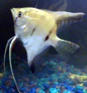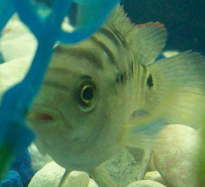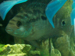 09/29/08 Cichlids Breathing Heavy And At The Top Of The Tank 07/07/08 Hi there , I am relatively inexperienced when it comes to cichlids , although my water quality is checked regularly I am worried about the behaviour of some of my fish. My tank is 6 foot in size and I have many cichlids of varying size and colour. I recently added 4 new cichlids to the tank, and after doing so almost my entire population are constantly swimming near the surface of the water ? Why are they doing this is this common or not ? And what can I do to prevent them from doing this as they all seem to bunch up , so you cant really see them , kind of defeats the object of having them ! Any advice given would be greatly appreciated Many Thanks. < The fish are at the top of the tank because they are not getting enough oxygen. Start by increasing the aeration. If you use a power filter then make sure the return breaks the top of the water to increase the oxygen exchange at the surface. Check the water temperature. The higher the water temperature the water has less oxygen carrying capacity. Lower the temperature to the lower part of their acceptable range. Check the ammonia and nitrites. They should be zero. If these are present then they can "burn" the cichlids gills and impede their ability to absorb oxygen from the water. Treat for gill flukes with Fluke-Tabs. These parasites attack the blood rich tissues of the gills and block the water from coming over the gills and interfere with respiration.-Chuck> Cichlid teeth 2/10/08 Hello. I just wanted to know, do all cichlids have teeth? If not, which do not? Thanks. <All cichlids have teeth; in fact, not only do they have teeth in the front of their mouth, but they also have pharyngeal teeth in their "throat" as well. Cheers, Neale.> Flowerhorn Growth 2/3/08 Hello sir or madam, I would like to ask these questions. I know Flowerhorn is a hybrid and their growth differ from one to another within the same species. But I hope you can answer me in general. When do flowerhorns reach their max size? < Cichlids in general have a pretty good growth spurt when they are little and then start to slow down a little when they get older. They can be forced by keeping their metabolism up by keeping the water at 82 F. Any nitrogenous wastes like ammonia, nitrite and nitrate will also inhibit their growth. They will probably really start to slow down after a couple of years.> When did the hump start to grow? < The hump on the forehead is a fat storage device usually associated with males. After about 8 months when the fish 's growth starts to slow down you may start to see the beginning on the hump on the forehead.> When did they attain their max hump size? Thanks. < Probably after the they have stopped growing and all the excess food goes into fat storage and is not utilized for growth.-Chuck> Cichlid Behavior 1/9/08 Dear WWM Crew: <Hello,> I have a 29-gal tank containing 5 cichlids. My questions are concerning the 2 largest of the 5 (both about 4 inches long and about 3 years old). I'll call the aggressive one Fish 1 and the non-aggressive one Fish 2. <Hmm... do need more than just "cichlids" in terms of description. Kribensis, Discus, Red Devils, and Oscars are all "cichlids" but clearly very different in terms of behaviour!> Fish 1 seems to be the "king" of the tank. He (or she?) is constantly charging/chasing fish 2. Doesn't seem to hurt fish 2....just chases nonstop and does this strange thing where he "shimmies" in front of fish 2. <Sounds like a male interacting with a female, or possibly vice versa. Cichlids will pursue potential mates, and then the chasing fish will expose its belly region to the face of the chased fish to show off the fact it is breeding condition.> Fish 1 completely ignores the other 3 smaller cichlids in the tank and seems only interested in fish 2. If I use a tank divider fish 2 swims about happily. I have tried using a tank divider to separate the two for up to a day at a time. What is strange is that while fish 2 seems to be annoyed by fish 1 for the most part, for about the first few hours AFTER fish 1 has been "'quarantined" and then let loose, fish 2 seems to be actually glad to see fish 1, swimming aggressively around and with him through the tank together. After a few hours, it's back to the original activity of trying to hide from fish 1. They also always do a few "lip locks" when they first see each other again. <Again, a fairly common behaviour, where the fish are testing each other's strength. This can be aggression, but it can also be part of the courtship process between fish of the same species.> My first question is: Is this normal behavior? <Impossible to say without knowing what the species concerned are.> Is this stressful for fish 2? <Ditto. But stressed fish tend to adopt unusual colours (often dark, or with vertical banding), hide a lot, and go off their food. If these things aren't happening, then they're likely not stressed (or not stressed that much).> Is this just mating behavior? <Possibly, but without knowing if they're one or multiple species, obviously impossible to say.> Or fighting? <Ditto.> It's been going on for as long as I can remember and fish 2 has always been in good health without any bite marks or anything. Question 2: Is there a way to tell the sex of the fish? <Different species have different sexual characteristics. Very commonly, males are larger and sometimes more brightly coloured or with longer fins (especially the anal and dorsal fins). Female fish will often retain some form of the juvenile colouration, e.g., vertical stripes on the flanks. Females will become distinctly rounded when carrying eggs, and close to breeding, you should see the spawning tubes emerge from the vent: long and narrow for the male, short and blunt for the female.> I'm unsure of the species...African cichlid is all I know....fish 1 is a beautiful pale blue with slighter darker vertical stripes. Fish 2 is speckled dark green and yellow.