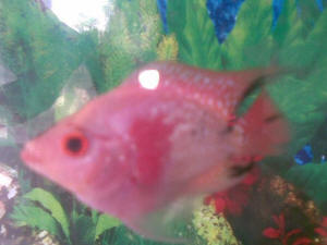 is a red devil. This fish comes in white, orange, red and grey. Your