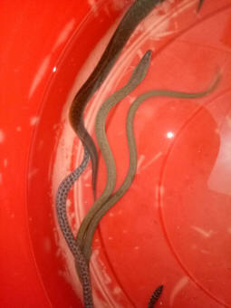 Some of Mr. Eko's eels which he keep in his other brackish tank has the