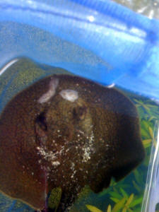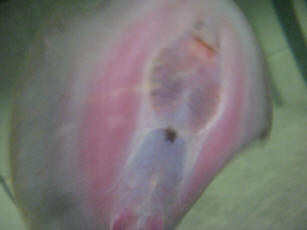 the infected area.... PS my rays r housed with 1 black Arowana, 1