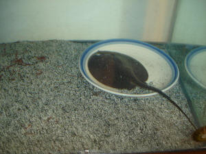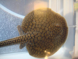 You can call him Ray (FW) cuz' that's what he is I've had my ray for about a month now. He is a fresh water ray from the St. Johns River in Florida. He used to eat from our hand during the first week, however, we can't seem to catch him eating now. It doesn't look like he's touching the stuff we leave in there. We're giving him tetracycline that our pet store ray specialist gave us. We've been keeping the filter off because the medicine, but have been doing 10% water changes every other day. His pH is at about 8, he's got a glass bottom (no gravel). The problem is that he doesn't seem to be eating, and his Left eye is clouded over. He's been on his medicine for about four days now. He looks a lot better than he did a week ago except for his eye and eating problem. Please Help us, thank you. <Hi Luke, Please head over to this link and do what you can to provide the conditions mentioned there. http://www.wetwebmedia.com/FWSubWebIndex/fwstingrays.htm Make sure you read down to the bottom of the page to see the disease section. These guys need a lot of room, filtration, low pH (below 7) and are sensitive to some meds. More at the link above. Craig><<This is actually not a permanent freshwater denizen... RMF>> A minor inaccuracy (Potamotrygonidae id) Hello, I wanted to say that I love the magazine. I also wanted to bring up one thing though. In the May 2003 issue focused on livebearers, in Fenner's article "Livebearing Fishes, For Aquariums... and Not" there is a picture listed as Ocellate river stingray, Potamotrygon motoro. The fish in the picture is actually P. henlei or P. leopoldi, more likely the latter, but from the picture it's impossible to tell. P. motoro is an extremely variable species, but the black body is a tell-tale that it's not motoro. I'm currently keeping a group of 3 Leopold's, http://scott.aaquaria.com has some of my pictures of them. Also, I wanted to ask if you were planning any freshwater stingray articles in the next few months, they're quite colorful, and very interesting, and are somewhat overlooked as aquarium fish, in my opinion. S. Allen Greeson Colorado Springs, CO <Thank you for this input. Will check, change in my notes. Bob Fenner> From: "David E. Boruchowitz" <editor@tfh.com> Judging from FishBase, I'd vote for leopoldi. Or is this a case of extreme variability in coloration?<Actually... please see: http://www.fishbase.org/Summary/SpeciesSummary.cfm?ID=53761&genusname=Potamotrygon&speciesname=henlei Bob Fenner> FW Stingray ids Robert, Hello. I wasn't quiet expecting a reply that quick, but yeah, most likely leopoldi. They can kind of go back and forth, generally leopoldi is black and white where as henlei is grayish black and gold spots. It varies a lot, and the best trait I know of is that henlei has it's spots extending to the underside of the body, leopoldi doesn't. It may all be a moot point, there are arguments that they're the same species, and that leopoldi is just the regional variant for Xingu, since it's endemic. who knows... Stingray taxonomy is in just as much disarray as most south American fishes. Scott <I checked the few pix on fishbase.org and the P. henlei is dark-bodied and similarly spotted to what I have (tentatively) identified on WetWebMedia.com: http://www.wetwebmedia.com/FWSubWebIndex/fwstingrays.htm and Fishbase: http://www.fishbase.org/Summary/SpeciesSummary.cfm?ID=53761&genusname=Potamotrygon&speciesname=henlei... agreed re the systematics of this family. Bob Fenner> FW Stingray ids The one on WetWebMedia may or may not be henlei, I'm going off Ross's publication with Schafer, Freshwater Rays, it's by Aqualog and Freshwater stingrays from south America by Ross for my species ID's. It doesn't make much of a difference except henlei is a bit smaller than leopoldi apparently. <Don't know that the arrangement of spots isn't different, but just wanted to state where my identification came from. Bob Fenner> Stingray Identification? - 03/31/2005 I am getting ready to