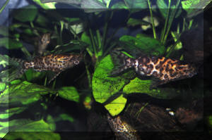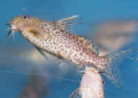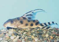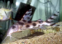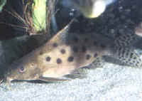 Acclimation: A comment re these fishes "break in" period; the time being their collection and your having them on hand. Once fully acclimated to their surroundings this family of fishes is tremendously hardy, but the first month or so of their captivity is a very sensitive time... when most losses occur. It is advised not only that newly arrived (they are largely wild-collected, though do keep your eyes open for captive produced specimens... these are smaller, but grow quite rapidly...). Keep your eye on specimens for a good four weeks after you acquire them... to assure they are settling in and getting enough food. "The eyes are the window to the soul" applies with mochokids, especially the ones whose eyes "bug out"... look closely at your catfish's eyes in ascertaining their health. They should be clear and bright. Foods/Feeding/Nutrition: Mochokid cats readily accept all types of foods in good quantity. In fact, the only real concern is balancing how much food to offer with your given mix of aquarium life. If you have a good deal of surface to mid-water feeding fishes, your cats may suffer from over-competition... and so you might be compelled to place sinking foods down near the bottom for their consumption. Another approach is to feed near dark or near daybreak (tank light break?) while your other fishes are "more asleep". Over time, most commonly available species of mochokids learn to feed at the surface... during daylight hours. In any event, make sure your Squeakers are receiving their share of some high-protein food daily or more often. This being stated, some greenery should be included in their diets regularly, particularly the non-Synodontis species. Blanched zucchini is relished, spinach is fine though messy, and even "green-based" pellets, sticks and tablets are good. As with all fishes, foods taken in the wild are not absolutely what one must offer as captive fare. Some Synodontis are known to consume a good quantity of snails (e.g. S. multipunctatus), even fish scales (S. schall of the Nile), all do well on a mix of fresh and prepared foods in aquariums. Disease: Mochokids are scaleless fishes and as such should be carefully treated for apparent infectious and parasitic problems. Copper compounds and Malachite Green (not always obviously present when just reading the product name... read the ingredients label) are particularly toxic to these fishes. If you find that you must use these, do utilize just half doses, with the added benefit of elevated temperature (about ten degrees F. more depending on species involved), or better still, less toxic medicants. I particularly like "Furan" compounds (Furanace, Nitrofurazone, Furazolidone) for non-specific infectious agents ("fungusses", bacterial complaints like petecchia, blood spots, tears in the skin, "burned" whiskers and the like), and "Clear Ich" by Aquatronics for protozoan complaints (e.g. ich, velvet...). Re Handling: Be careful are the watchwords here. These fishes have stout, make that strong and sharp leading dorsal and pectoral fin spines that, though not associated with toxin, are notably painful to be stuck by. If you must net them, use large tools, and a towel between you, the net and them. Reproduction: A few species have been spawned in captivity with and without hormonal manipulation/injection. Females become very robust (fat) as they near spawning time and have broader, blunter genital papillae than males. Some notes re various species: Synodontis petricola scatters its dense, clear eggs and milt at night in a cave and no parental care is exercised. S. shoutedeni is a day spawner, with eggs being released in mid-water and females practicing a type of "sperm drinking" fertilization, having engulfed the males sperm just ahead of this time while diving into floating material together. S. multipuncatus is a sort of "cuckoo catfish" that hangs around with various mouthbrooding cichlids, sneaking their fertilized eggs amongst the unknowing cichlids spawn. The multipuncatus fry hatch out ahead of the cichlids and generally consume them over time. As can be seen, all depends on the species in question regarding what sort of set-up one needs to provide (separating adults from spawn to... nothing) in order to successfully spawn and rear these fishes. Cloze: As a family of catfishes, the mochokids get the highest marks for broad selection, desirability and appropriateness for aquarium use. There is virtually some species for most any/all freshwater systems, particularly biotopic African ones, including those with rough and tumble cichlids hailing from the "dark continent". The family's members are remarkably hardy, aggressive enough to hold their own with most any mix of tankmates, yet almost entirely dismissing of other fish life. They more than readily consume all types of foods, have no great water quality needs, and many are exceptionally beautiful. Add their obvious intelligence and playful natures in and you have a group of fishes that offer much to the aquarium interest. Give them room, a dark space to be during the day, some food of their own, and a dearth of toxic "medications" and you will may have a wet pet for decades. Bibliography/Further Reading: Catfishes on the Internet: http://fishbase.org/Summary/FamilySummary.cfm?ID=144 Planet Catfish: http://www.planetcatfish.com/core/index.htm Allen, Bob. 1995. Breeding Synodontis multipunctatus. TFH 7/95. Boggs, Sallie S. 2002. Breeding and raising Synodontis shoutedeni in the home aquarium. FAMA 4/02. Burgess, Warren E. 1989. An Atlas of Freshwater and Marine Catfishes. Tropical Fish Hobbyist Publications. NJ, USA. pp. 786. Colditz, Gabrielle. 1992. The strange life of Synodontis multipunctatus. TFH 2/92. Finley, Lee. 1979. Some Synodontis species of the Zaire Basin. Pt. II, FAMA 9/79. Finley, Lee. 1980. Some Synodontis species of the Zaire Basin. Pt. III, FAMA 5/80. Finley, Lee. 1981. Some Synodontis species of the Zaire Basin. Pt. I, revised. FAMA 9/81. Finley,
