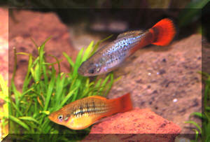freshwater aquarium fish. To 7 cm. in length. Cond.s pH 7-8, dH