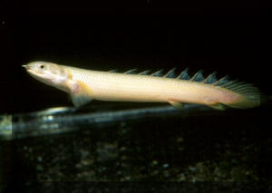 The other Polypterid genus, the torpedo-shaped Polypterus have pelvic fins. Polypterus includes at least nine species, a handful of which make their periodic way into the trade.