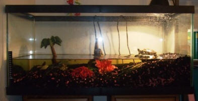 Just One More Question, RES sys. - 10/06/2007 I'm really sorry guys. I just have one more question for you guys. Do baby red eared sliders need UVB rays or just juvenile and adult red eared sliders? I really hope you guys don't find me annoying:) Thanks for your help. <Greetings. They ALL need UVB light. Since reptiles use UVB for vitamin synthesis, if they don't get enough UVB, they get sick. End of story. Not providing UVB light is one of the commonest mistakes inexperienced reptile keepers make, and likely one of the commonest reasons their pets become deformed, sick, or die prematurely. A basic UVB system shouldn't cost a great deal. Do make sure you get a UVB not a UV or UVA system, as other lights provide different wavelengths that won't help. Good luck, Neale> Separate Water Dish - Red Eared Sliders 7/21/07 Hi, <Hi there, Janet. Andrea this evening.> I have 2 RES, do I need to provide them with a separate water dish? They're currently in a tank with 2/3 water and basking rocks, do they need a separate water dish for drinking or is the water in the tank fine? <<No, you do not; however, you need very, very heavy filtration, and a very large tank for them. I do hope you have provided then with a home adequate for their growth and their messy habits.> Red Eared Slider help 7/21/07 Hello guys, <Hiya Christopher -- Darrel here with you tonight> I wanted to know how to take care of an Red Eared Slider in the winter. For example, how much should I feed him, how often should I change the water and should I still give it sunlight or UVB lighting. <These are very good questions, but the answers are a bit muddy & not very concrete.> <Let's keep it simple. Sliders will respond to the TEMPERATURE CHANGES of winter much more strongly than the subtleties of altered photoperiods (shorter days) and all that science-type stuff. So as long as the Temperature holds, it's not really "winter" as far as the turtle is concerned. If your turtle is inside the house in an aquarium and there is a normal basking light (there should not be a water heater) then for your turtle, it's just another day in the swamp ... No winter to speak of. If it's outside, in a pond .... it's way too small to BE in a pond ... so set up a tank indoors like I described above and -- presto -- no winter. Now ... if it gets a LITTLE bit chilly where you have her, then cut back the feeding just to be sure. It never hurts for them to be just a little bit hungry.> My turtle is 2 inches and is a female. <A bit of a disagreement here, Chris. If it's only two inches and assuming you haven't probed it, she's too small to determine the sex yet. Notice I didn't say too "young" because for turtles, like most reptiles, sexual maturity (and with that the visual differences between the boys & girls) comes with SIZE, not age.> Also, do you know the average growth rate of an RES. Just the approximate average. <That is SO totally dependant of heat, food and environment that anything I say could be wrong (and at the same time right for someone else) -- 3/4 to an inch each year for the first year to year & a half and then slower after that .... but if it's warm enough and she's fed enough, it could almost be double that> Last, do turtles in fact hibernate or not? <Sliders do, depending on where they are. In some Northern states wild sliders have been known to over-winter at the bottom of a pond that's frozen solid at the top. Now ... to anyone reading this who has sliders that can be subject to winter conditions ... PLEASE keep in mind that while they do hibernate and CAN survive a cold winter .... MANY wild turtles do not survive. Some perish outright and many are so damaged that they barely survive the next year. Mother Nature sees that 1,000 hatch so that ONE can live to lay another set of eggs. The odds do NOT favor a turtle wild ... so please don't try it -- as responsible pet keepers it's our job to improve Nature's odds, not duplicate them.> Thanks for all your help. <No charge!> Can a turtle outgrow it's shell? 9/13/07 Hello again <And a hearty hello, howdy & Hiya right back!> So we've both established my Red Eared Slider turtle is growing too fast. :( I'm trying to only feed 2 times a week now, adding more leafy veggies and less pellets/dried prawns/bloodworms. Does that sound ok? <The ONLY thing I feed mine are Koi pellets ... it's a vegetarian-based healthy & balanced food> I'm now wondering if Its possible for a Slider to outgrow it's shell? I keep reading conflicting information online. <Funny how the Internet has allowed any dufus with a web site the ability to give advice, isn't it? Um .. wait a second .... that doesn't sound right .... forget I said that, OK?> His front legs and neck seem to be puffing out of his shell, and he never fully retracts his legs or neck anymore. Perhaps this is because he is comfortable with me and feels no need to protect himself??? <From the sound of it, he probably is relaxing a bit but fundamentally he sounds obese! Keep on the diet and remember, they have VERY little to worry about or run from in captivity -- they don't need very much to eat.> If he is too big now, will his shell ever catch up to the body, even with more restricted/varied diet .... <In time, yes. The shell grows through a much slower process than the skin and other organs ... it will take a LOT of time ... so please be patient> ... and more exercise? ... <I want to make a point about this ... EVERY YEAR ... hundreds if not thousands of people buy tiny little TurtleGym 1000's for their sliders based on infomercials from Chuck Tortoise and ALL of them end up folded up & shoved under a little corner of their hot rock gathering dust.> <Ahem. OK .. I'm having one of those days. Or perhaps an "episode"><<Darrel you're really out/in there today! RMF>> <Pay attention to habitat, diet and temperature gradients and try not to over-stress yourself or your little turtle.> Thanks for all your help! <Write back & send pics of him!> <Regards, Darrel> P