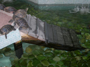 Substrate, Terrapin sys. 2/19/09 Hello! I'm quite worried, as my red-eared terrapin, housed alone in a big tank, keeps trying to climb out non-stop. It's VERY restless... climbing and digging away at the sides of the tank. Currently it's about 7-inches in length, and I'm worried it may have eggs. It laid eggs in the water before, because I only have a rock as its basking area. Just need to check, would it be safe for me to place a small basin into the tank, with a mixture of soil and sand for it to lay its eggs? Thank you! Best Regards, Alex <Hi Alex. It does sound like you have a female anxious to lay her eggs. It's important to let her do so: if not, she'll be prone to egg-binding, and that's a painful (and expensive) problem to deal with. Yes, putting a dish of dry sand somewhere above the waterline is recommended. It will need to be reasonably big and deep so that she can sit on the sand comfortably, and dig a nest a couple of inches deep. Something like a cat litter tray is ideal, filled with silica sand or river sand to a depth of 2-3 inches, at least. The nesting site will need to be bigger than the turtle, otherwise she won't be able to climb in and make her nest. Obviously these eggs will be infertile and won't hatch if she's not mated with a male in the last couple of weeks. Cheers, Neale.> Hello Neale, Thank you so much! I will get cracking on it! Cheers, Alex <Happy to help. Good luck, Neale.> Innovative New Turtle Basking Platform 02/19/09 Hi, Bob, Neale & Crew, <Paul> Hope all is well. I have written many times before and you have always been very helpful. Bob, I saw your revised book at the 2009 Global Pet Expo in the new product showcase (TFH entry), looks great, can't wait to get my hands on copy. Anyway I am writing to let your readers know about a great new turtle product that is going to hit the market very soon. I know you often get questions about turtles, so I thought you might enjoy seeing this product. The product is the Reptology Turtle Topper, a unique and innovative above tank basking platform that will fit most standard tanks up to and including 55 gallon tanks. For turtles that are active swimmers and baskers, this product will have so many benefits. If anyone is interested I would encourage them to watch the below video that I did with ReptilesTV.com, the video, which is posted on YouTube currently explains all the great features. I am confident you will enjoy the video and find it informative. Thank you. The link is - http://www.youtube.com/watch?v=LICy7PWiCQg Paul Demas Project Manager Penn Plax, Inc <Nice video, good idea for this ap. Hello to the Rosens and Goldmans. Bob Fenner> Re: Innovative New Turtle Basking Platform 02/19/09 Bob, <Paul> Thanks, glad you liked it. I personally believe it is a great turtle basking product, different from anything on the market right now. Will say hello, didn't realize you knew the Goldman family. <I met them... many years ago... on Long Island... through Eugene Danner I believe, before he had son... Mike take over Supreme... man! I am getting olde!> Would also encourage everyone to take the time to visit www.reptilestv.com they have some great videos on reptile care. Thanks for everything. Paul Demas Project Manager Penn Plax, Inc <Welcome. BobF> Small Turtle In A Big Pond 3/30/07 Hi, I just built an outdoor pond (4 X 9) and am unsure of whether I should put my RES in. It is the size of a half dollar and I have him in a 25 gallon tub right now. Is it too small to be put in a pond? Should I wait? Thanks. Michelle < At that size he could be eaten by many predators, like birds, raccoons, possums and snakes. I would recommend waiting another year.-Chuck> Re: Turning A Turtle Loose In A Pond 8/21/06 Ok Thank you. Do you think the turtle I already released is still alive or not? < Adult turtles are pretty tough and have few predators. Smaller turtles are preyed on by just about everything. If your turtle was released early in the year, close to being an adult size and in good health, then I think he probably made it if the winter was not too severe.> I don't have a picture of the turtle but I was told its a Cooter or something like that. < Lots of turtles go under the name of cooters or sliders.> Also, I do want my turtle. I just think it would be better off with other turtles then in my little pond. It is about 2 feet deep and 6 feet long and 3 feet wide. It is actually a kiddie pool and I have fish in there with it and it kills them all the time and also bugs so I think it could survive in the pond but I'm worried about if it could survive there in the winter. Thank you for your answers and help. < Many people think that turtles get lonely and need other turtles to be around. Other turtle are looked at as competition. If your pond has a mud bottom and your winters are not too bad then your turtle may be OK outdoors. In the northern part of the country where winters are pretty long and winter temps are pretty severe they do not overwinter well.-Chuck>New Turtle Questions 12/16/05 Hi there, I have 2 RES's that I purchased at a mall kiosk (my 1st mistake, I know), but I have been able to figure out most everything by now and they are doing well. However, my 20 gallon tank is being overrun by green algae, and I have been cleaning out the entire tank repeatedly for 3 weeks, but it keeps coming back and just keeps spreading. Your site doesn't seem big on it, but the people at PetSmart said as long as at wasn't brown algae it wasn't harmful. But now its spreading onto their basking rocks, and the water is even turning green! < Turtles are pretty messy eaters. Excess food and turtle waste breaks down to ammonia that is loved by algae. Filters help by developing bacteria that break the waste down into less toxic substances such as nitrites and then nitrates. Just like in a fish tank. The algae really doesn't hurt anything, it just looks bad. Feed your turtles a little bit in the morning and a little bit in the late afternoon. All