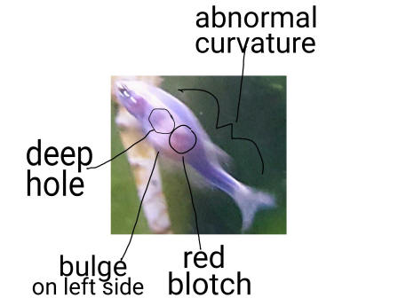 long fin zebra Danios (female). Recently she has been subjected to