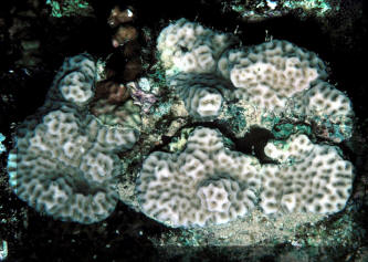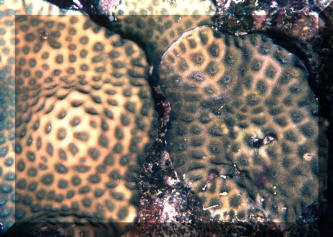 in its wide range. Colonies encrusting to hilly to columnar to boulder-like.