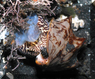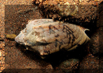 | Cymbiola vespertilio (Linnaeus 1758), the Bat Volute. To 6 inches long. Found on sandy