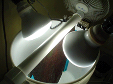 put into a bucket on a sink in the office, complete with dangerous CFL
