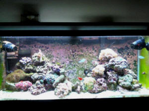 3/23/09 max number of starfish Protein Skimmer... new tank op. 3/19/09 Re: Suggestions... skimmer sel., AquaC... pump for... gen. mar. maint. 2/26/09 Thank you Scott V. for your reply. <Very welcome.> Just found out about this site about a month ago, there is a ton of information on here. Thanks for referring to the other links. After more research, i agree with you and will go with Remora #2. Will put # 1, which has Maxi-Jet 1200 pump, on 55 gallon, and go with a Remora with a Rio 1400 or Mag-Drive 3 pump. One better than the other? <The Mag for my taste.> With being unable to install a sump right now, the Emperor 400 filter, should it stay or go. Would good canister filter be better? <Not really in this case, with the live rock you will basically just be using the filter for running a bit of carbon. You already have the Emperor and it is just easier to replace the carbon IMO.> I figure with the fishes, i need some kind of filtration besides skimmer? <With the liver rock and a bit of carbon, no, not necessary.> Didn't know that about sand sifting star. He, or she, is one of tanks first inhabitants. It is about twice the size as when first put in. Because of rock, it stays in about 1/3 of tank, in front. But if it is sucking the life out of sand, it will go. Will take to LFS and trade or give to. <The real issue is it will deplete the live in the sand until it has nothing left to live on itself.> What are other critters good at keeping sand clean? <Nassarius snails and the microfauna that will populate the sand from the live rock. See: http://www.wetwebmedia.com/dsbbiomakeup.htm for other options.> I test for salt, try to keep at 1.024, Ammonia, pH, Nitrites, Nitrates, Calcium, try to keep about 400. Anything else i should be testing for? <Definitely carbonate hardness, I would test for magnesium too though. And I would raise your spg to 1.025 too.> The Bubble Tip has been in tank about 5 months. It attached near bottom on rock, about half under a ledge over sand bed. It has never moved from this spot. The 2 Maroons have been in about a year. They were both about the same size at time. One has grown very little, about 2 inches. The other is now about 3 times it's size, female i figure, it now wants to keep all the sand blown away. Down to the glass. Like a bowl. I push sand back in and in short order, swishing and with mouth, she has her bowl again. Should i leave her alone? <Yes, not much you can do if the fish wants to dig, other than remove the fish.> The Anemone, it stays open for the most part, sometimes it gets in a ball, but it isn't filled out like at first. I hand feed it, once a week, a piece of raw shrimp about the size of a nickle. I was thinking of maybe feeding twice a week and soaking shrimp in some Zoe? <You can, yes.> Now to the 55 gallon. The rock i put in last week is doing good. No spikes at all. I've got some hitchhikers. After putting rock in i started hearing this clicking sound. I thought, oh no, sure enough, 2 Mantis Shrimp, that i know of. My first time to deal with these bad boys. I see now why Mr Fenner says with any size these would be the T-Rex of the ocean. They are bad to the bone! <!> Will have to get these out before adding any livestock. Just a comment here. I think i have come a long way in this so far, but have so much more to learn, i thank you for your help. <I am happy we have been able to help out.> I have gotten a lot of compliments on my tank. Have had people come by, they see the tank, say, what's that, grab up a chair, sit in front of tank, they are just amazed, ask 400 questions, what's that, wow, look at that, is that alive. Now i have people come by asking, how's the tank? As always, thank you for any suggestions. <Welcome.> Larry Software review? 2/26/09 Hi there people, some time back I submitted an article to you entitled "Mbu for you?" and I am still very grateful for your inclusion of it on this great site. I am contacting you know to see if a review of an aquarium management software is something you would be interested in. I am part of the admin team on a forum, www.fishkeepingforum.co.uk<http://www.fishkeepingforum.co.uk/> and the site creator and the development team is in the finishing stages of version 2 of Aquatrax. What he would like to know is whether a review of the software would be something that you would support on your site? He is very keen to send you a free copy of it for you to have a play with in the hope that you will give it some coverage on your site and get global exposure. Here is a link to the site http://www.aquatrax.co.uk/ Many thanks for your time on this as I appreciate you are very busy. Stuart Morse <Mmm, will see if NealeM has interest or referral. Thanks Stu. BobF> Marine aquarium program 2/26/2009 Hello all, A software publisher is looking to have a marine aquarium management program reviewed in the pages of our august journal. If someone would care to have a free copy of the program to play with, on the understanding that a review would be forthcoming within, say, 4 weeks, please step forward! The application is called Aqua Trax and can be seen here: http://www.aquatrax.co.uk/ I do notice that it works on Windows only, and whilst sold in the UK, it has the option to run using non-metric measurements. Cheers, Neale <Neale, I for one would be up for that, writing it up for CMA. Scott V.> Sold to the man at the back. May I send your e-mail address along to our correspondent and have him contact you with serial numbers and whatnot? Cheers, Neale <Yes, please do. Thanks, Scott V.> New To The Marine Hobby, Need Additional Guidance 2/20/09 Marine Set-Up/Maintenance Hi there everyone. <Hello Amy.> I am a real novice here and am on my 4th week of cycling my husbands new marine tank. This was his new hobby and since I am home more than him, I have kind of started picking up with the tank where he leaves off. We currently have a 75g tank with a Rena XP4 filter, Sea Clone protein skimmer (that's finally working),