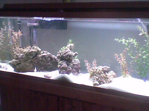 The tank setup is 55 gal. w/live rock on a 1" bed of sand. A