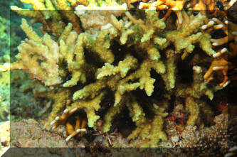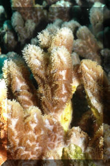 encrusting or branching • highly fused corallite structures (hydnophores) where