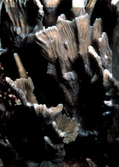 lightly calcified and fragile colonies • corallite walls absent • septa dentate
