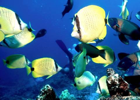 many Butterflyfishes there, and shaped like and the color of the fallen