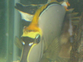 you mention lead me to this initial conclusion. Marina Naso tang problems Hello, over the time of taking care of my fish I do a lot of research, reading books and message boards. And I have heard on the message boards from a lot of people that there Naso tangs do perfect for about 6 mos. and then suddenly they wake up and there Nasos are dead, I am one of these people as well. There are no disease signs, there perfect looking, until they croak. After my Naso died I asked my LFS about it, he said for the past year or so Nasos have been doing bad. He told me too about the 6 mos. problem with Nasos. He said he tries making big deals so he doesn't have a dead Naso in his store. Did you ever hear about this? <Mmm, no definite time frame on these sorts of mysterious losses. Most of the Naso lituratus sold do die from being kept in too small a volume, size systems principally (starving is another large source of captive mortality)> I want to try another Naso, is there any other way I can avoid losing another Naso. I think these fish are awesome. BTW my tank is 240 gallons, water quality great. Thanks! <Please see here re selection: http://www.wetwebmedia.com/naso.htm Bob Fenner> Ill Naso Tang and UV sterilizer Hello Guys, <Hi Scott, Don with you tonight> First of all, you have sold me on the QT and I just purchased one today after reading through the many testimonials on the web site and in light of my sick Naso. I will follow protocol of many other write-ins with a description of set-up and with a few questions. Sorry for the information overload, and thanks for any guidance you can offer to this novice aquarist. Tank description : 75 gallon, custom sea life wet-dry and protein skimmer. live sand, Rio 2500 powerhead, no U.V sterilizer yet, but am currently shopping for one and open for suggestions in this area. Water parameters: ph- 8.2 ammonia - .40 (?color chart!) nitrite - .25 nitrate - 20 --- I can't seem to affect these parameters, with my biweekly 10% water changes, or even after a 25% change today. any suggestions <If these numbers are accurate, you have something dying/decaying (like food, snail, crab, etc) keeping these high. The ammonia and nitrite need to be 0. Could be the 'dry' part of the wet dry filter. Is your skimmer giving good skimmate, dark color/good quantity, daily? It should. Could your tests be inaccurate? See if you have a local Fish Store or another aquarium friend that can confirm?> I purchased a Naso from an out of town dealer with several specimens - half of which had black powdery spots all over and half of which looked and acted fine. I chose one of the healthy ones and after 5 days, mine is looking the same. He has been pacing constantly from one side of tank to the other around rockwork for 3 days. I found him lying motionless this morning and thought he was dead. I have set up a 10 gallon quarantine tank ( I know, finally). I gave it a freshwater dip and placed it in QT. <Yes, we should never buy from a tank (or even an apparent 'clean' tank if the store uses a combined water system) that shows any kind of disease. Never, as you now know :(.> prior to reading your website I : set up QT with all new water (oops) and new sponge filter (2nd oops) -- now what? <Make lots of salt water and aureate the heck out of it. Get ready to use it for daily (20-50%) water changes. You will need to do this to keep ammonia and nitrite in check> also dosed with 1st dose of copper treatment (now wishing I hadn't)-- stop or go? <Hmm, yes, for black spot, fresh water dips are highly successful and much less stressful. Initiate water changes and remove/replace sponge from filter. Make sure the fresh water dips are pH, temp adjusted and aerated> Naso is not eating (offered live kelp, and Mysis shrimp among others)-- hasn't eaten in 3 days <Continue offering, siphoning off uneaten excess right away> I also have yellow tang in tank that was successfully treated for pop-eye, but is showing pale coloring around face. is this disease or nutrition deficiency? <I would increase veggie in diet, maybe a supplement by soaking in Selcon if you can find it> I am also concerned about: purchasing an appropriate U.V sterilizer with the correct flow rates-- my water parameters and the ever presence of am, ni, and na-- <I would read here http://www.wetwebmedia.com/UVFAQs.htm and the blue links at the top of the page for more. I found this link by typing 'U.V sterilizer' into the Google search at the bottom of the WetWebMedia.com home page. Try it you'll like it!> my dealer sold me an air pump to match the 10 gallon tank but I'm not sure if it is adequate for this fish-- <I am sure the pump is OK for the QT. A small powerhead is a good idea as well. But let's be frank. The worst news for your fish is that a 75 is possibly (but I don't think so) large enough for a yellow tang. And for the Naso? Forget it as this fish is heading for 18". The Yellow Tang needs 90-120G and the Naso several 100's of gallons. Don> Naso tang in shock I acclimated my new Naso tang this morning. Since he has been released into my system he has remained in shock (lying on the bottom, breathing rapidly, moving his side fins and keeping his dorsal fin erect). <Signs of anoxia, a lack of oxygen> He has moved a few inches here and there but is otherwise looking pretty pathetic. Is there anything that I can do to help? Does his actions mean inevitable death? <Add aeration ASAP. An airstone/mechanical diffuser, air intakes on your powerheads...> The other fish that were acclimated were 2 Heniochus, flame hawk, anemone and a coral banded shrimp...all are doing extremely well. Lights are still off. Any suggestions or valuable insights? Carrie <Naso genus tangs are active, large animals that require high, consistent levels of dissolved oxygen... and as part of this, plenty of room to swim, have for gaseous exchange. And yes, best to leave the lights off for now. Bob Fenner> - Shoe-horn Quarantine - Greetings Crew, I really hope you can 