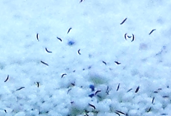 white tips. One, near a snail has red tentacles, maybe because it fed or is