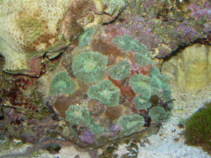 <Photo 1 appears to be a colony of Mushroom Anemones,