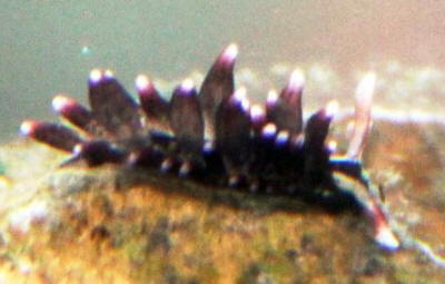 Found a dark Nudibranch with white tips on frills and antenna, came as a