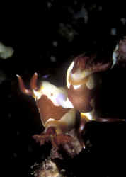 tentacles and rhinophores are brown, tipped white. Trop. W. Atl. To an inch