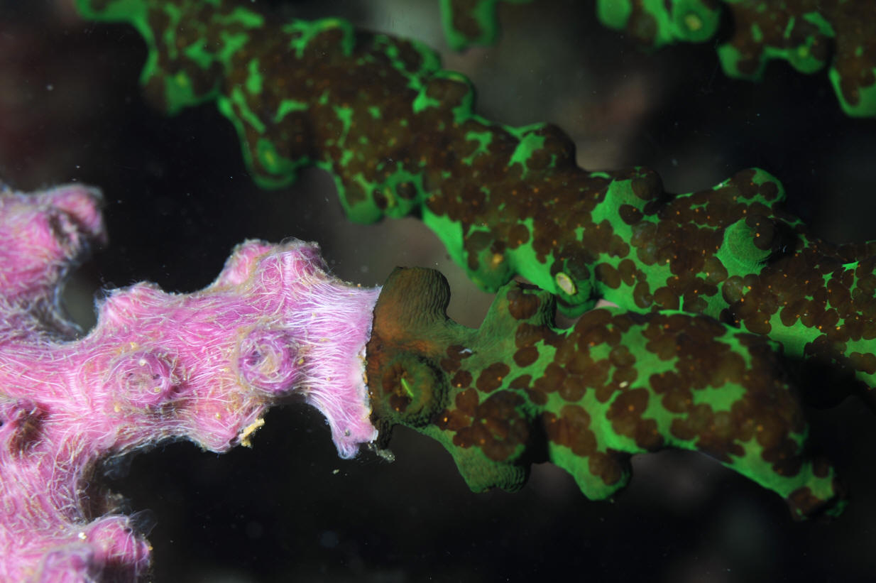 Coral. External flesh (coenesteum) green to brown to blackish in