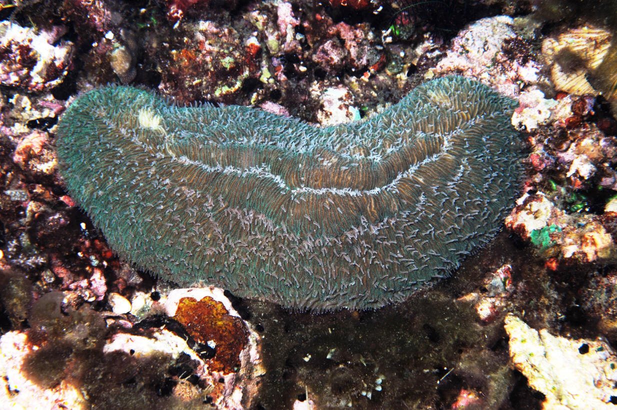 Genus Ctenactis Verrill 1864. Elongated polyps with a central furrow of one to many enclosed mouths. Septa are regularly arrayed with large triangular teeth. S. Leyte 2013