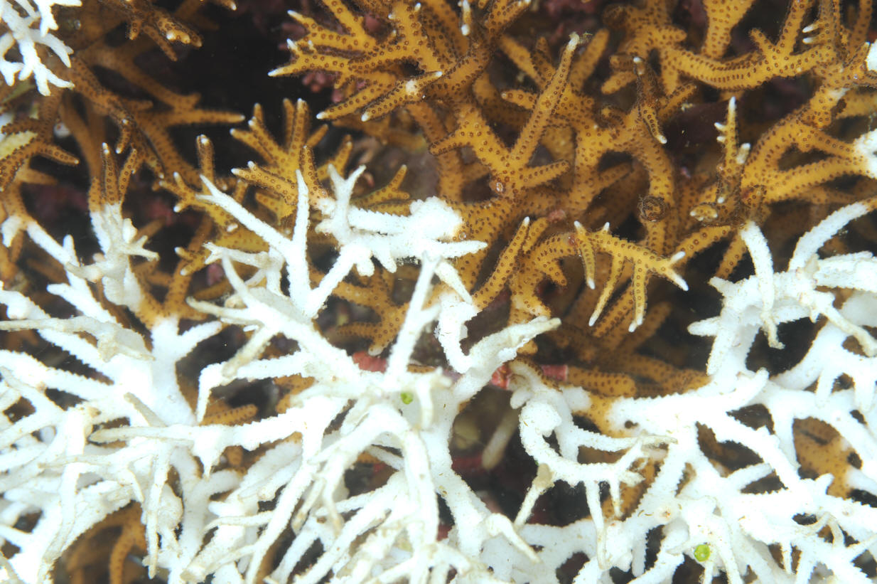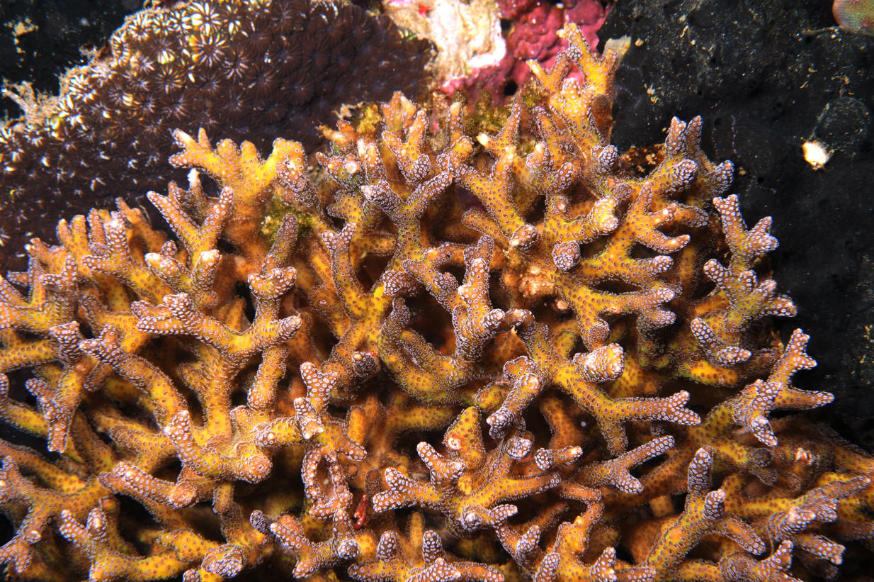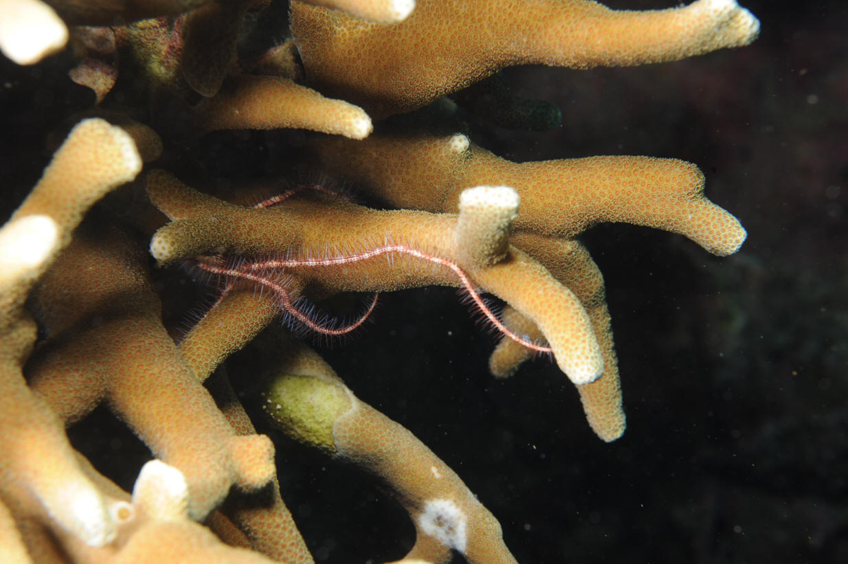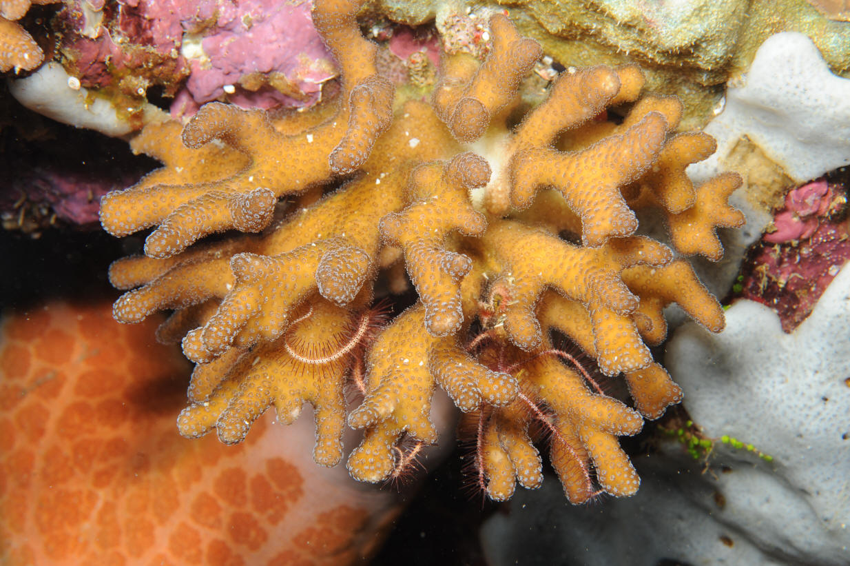 Seriatopora caliendrum Ehrenberg 1834. Bird's Nest Coral. The second most commonly encountered member of the genus. Note the more blunt ends of its branches. S. Leyte 2013