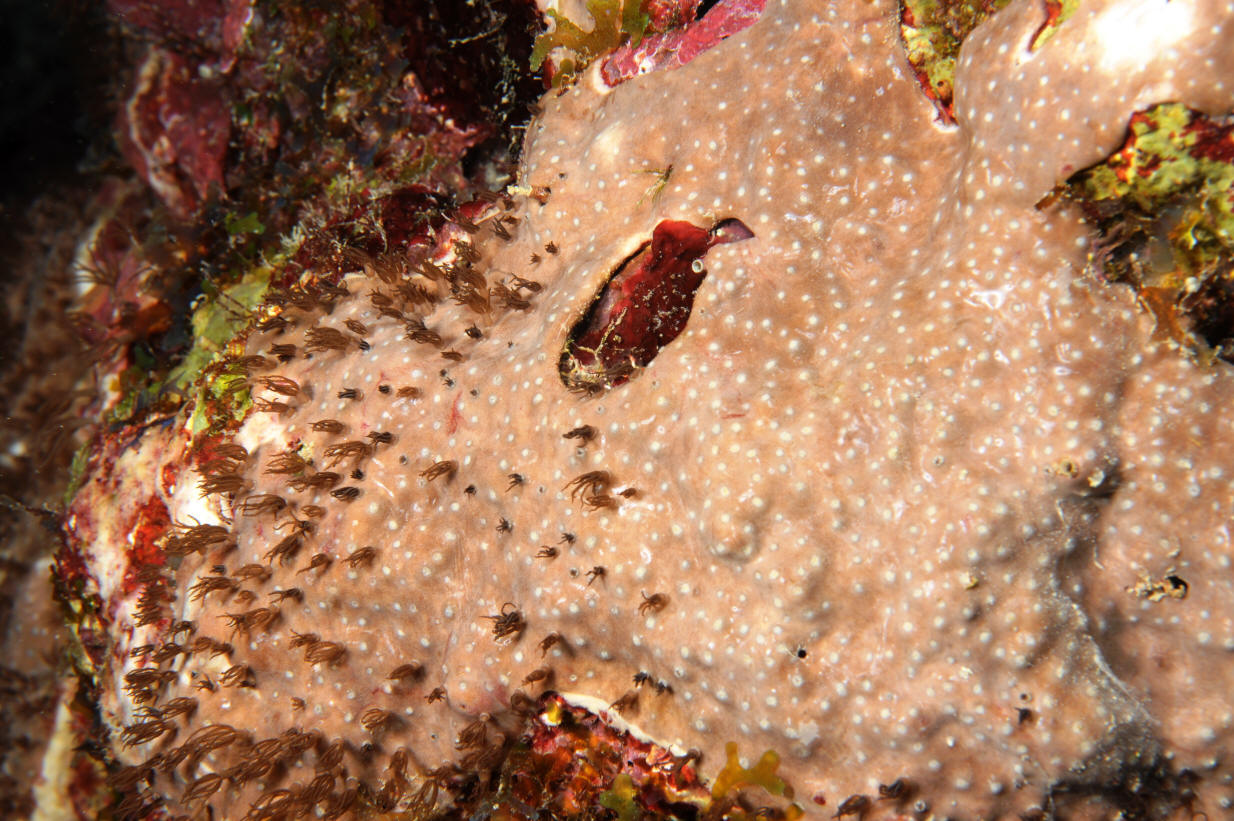Gorgonian. Form encrusting mats that look hairy when polyps are