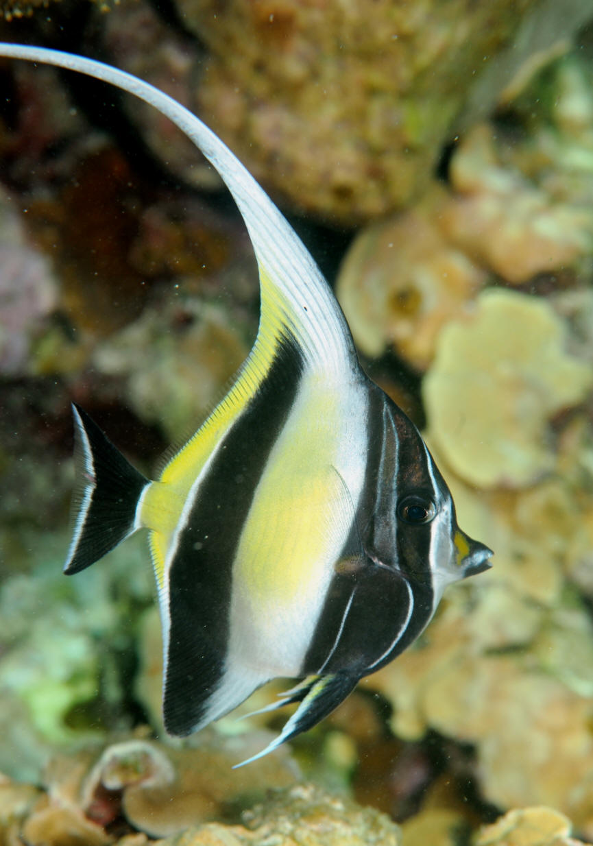 the Moorish Idol. Indo-Pacific. Can be kept in captivity, though rarely