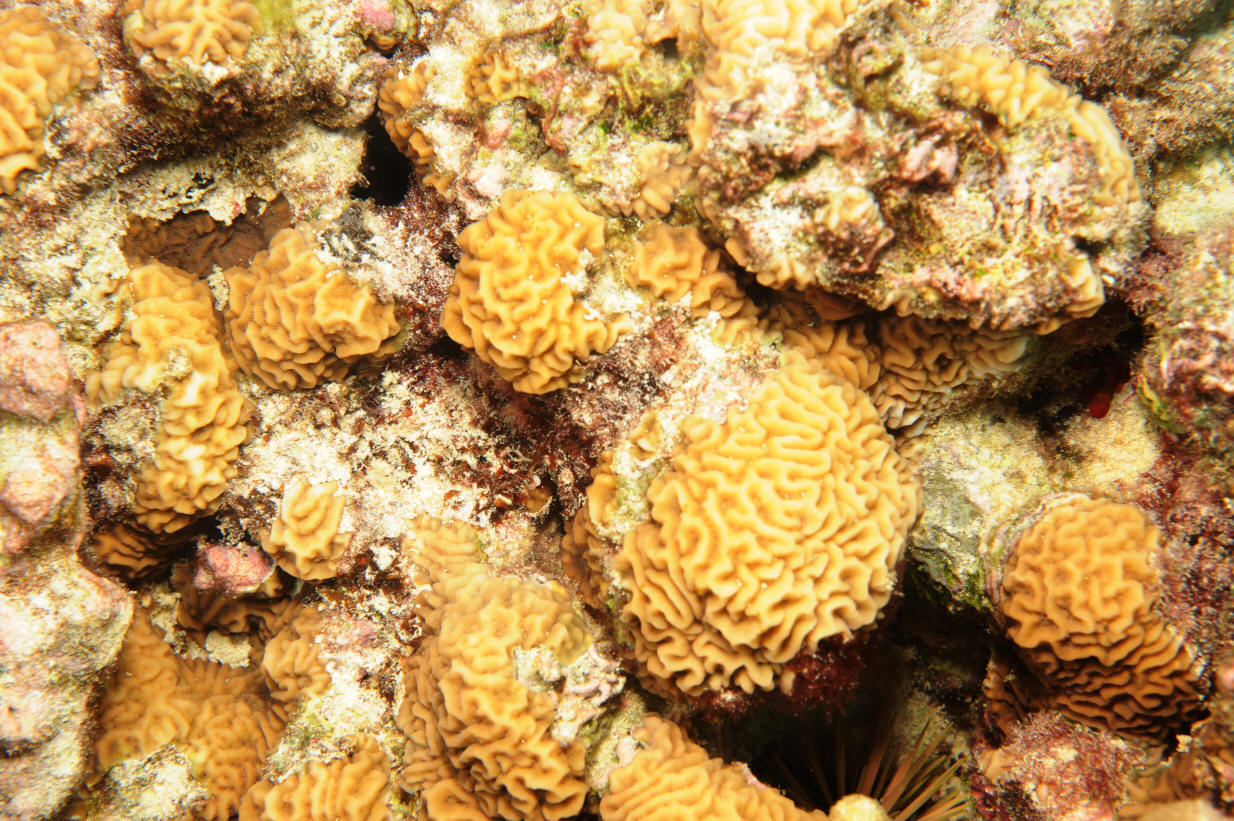 Colonies encrusting to laminar, showing short, irregular valleys. Kona 2012 |