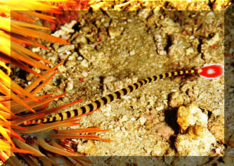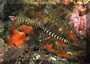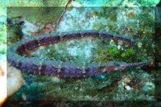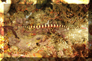 Yellowbanded Pipefish; another Ringed (Orange) Pipefish. . To 16 cm. E. Indo- W. Central Pacific; Here in S.