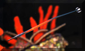 1972, Redstripe Pipefish. Hawaiian endemic. Often found in dark
