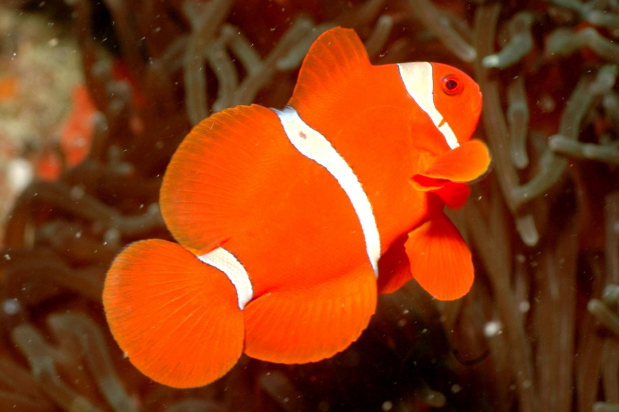 Spine-Cheek Anemonefish, Maroon Clownfish. Bright red to orange