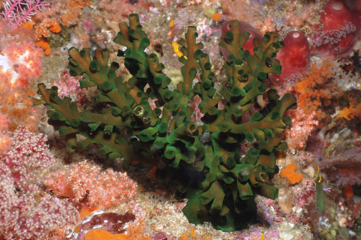 Sun Coral. External flesh (coenesteum) green to brown to blackish