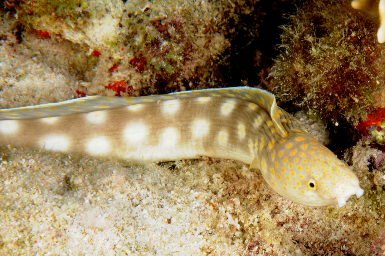 the Sharptail Snake Eel. Tropical West Atlantic. To a bit over