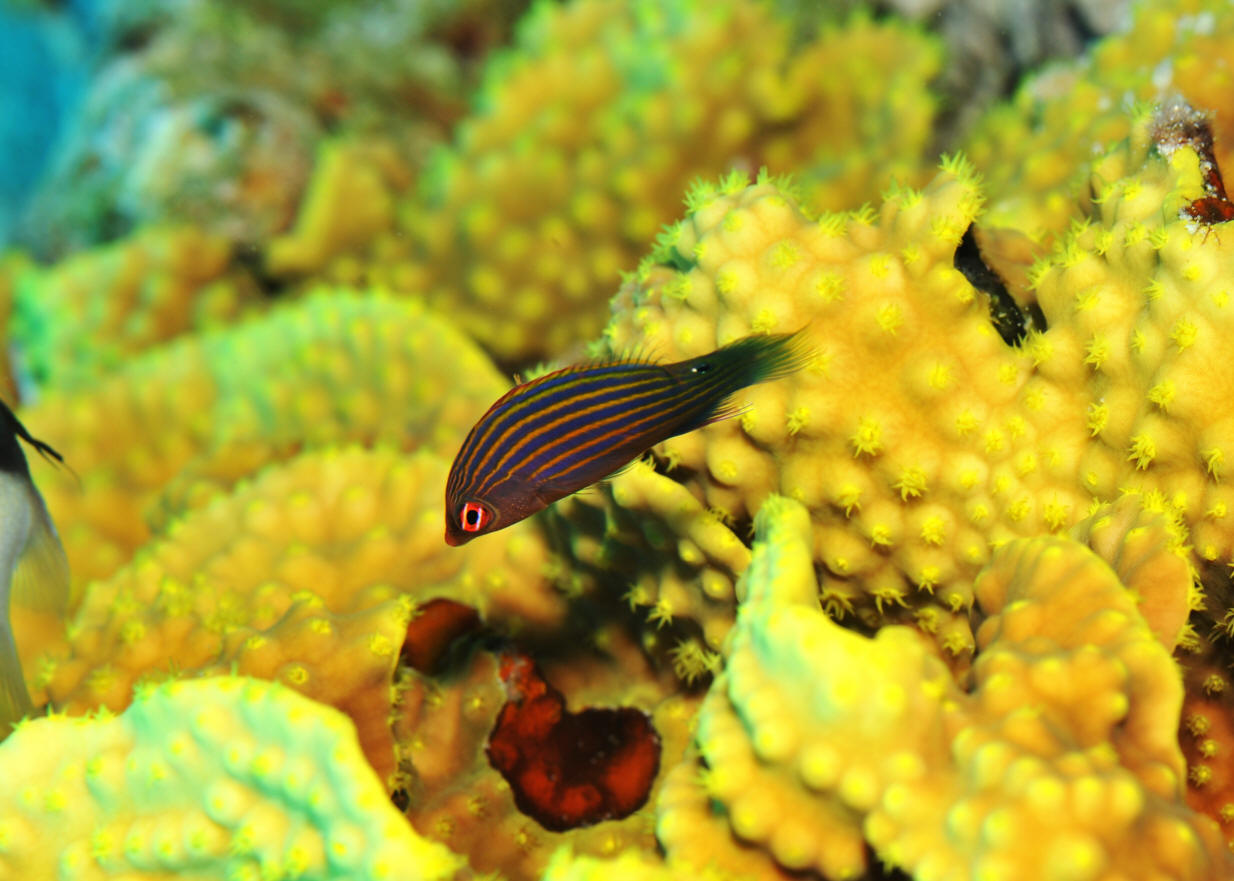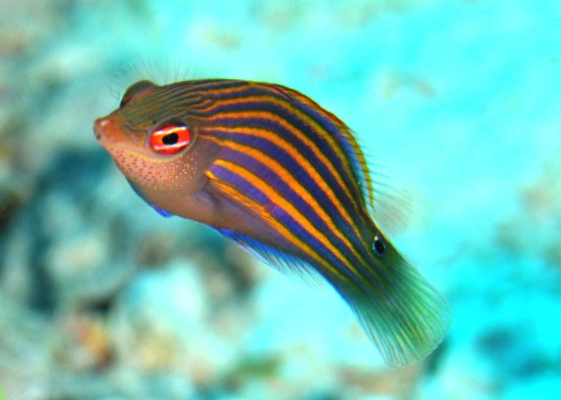 the Sixline Wrasse (2). A feisty, though small (to 4") a reef