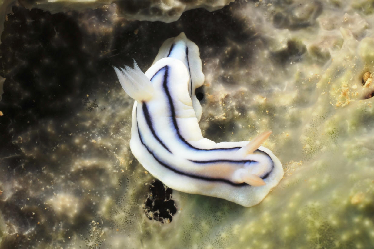 Pale blue bodied, black lines. Small gills, inconsistently colored