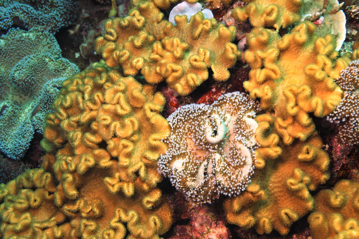 1886, Elephant Ear Soft Coral. A large alcyoniid with symbiotic