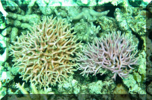 Rhodactis sp., Hairy Mushrooms. About 10 cm. across each polyp. Fiji