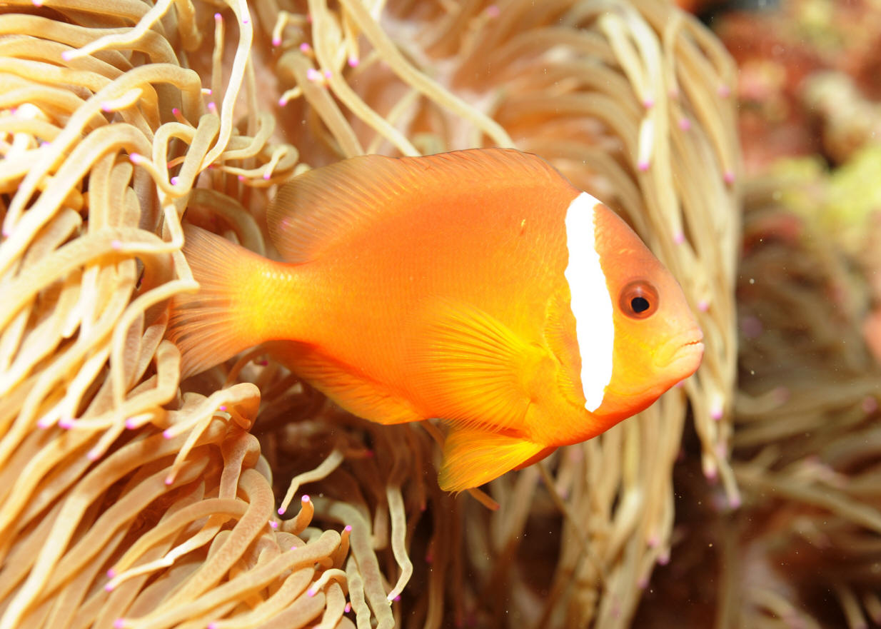 Amphiprion barberi Allen, Drew & Kaufman, 2008, Barber's Clownfish. Usually commensal with Entacmaea or H. crispa. Found in the Central Pacific (here in Fiji)