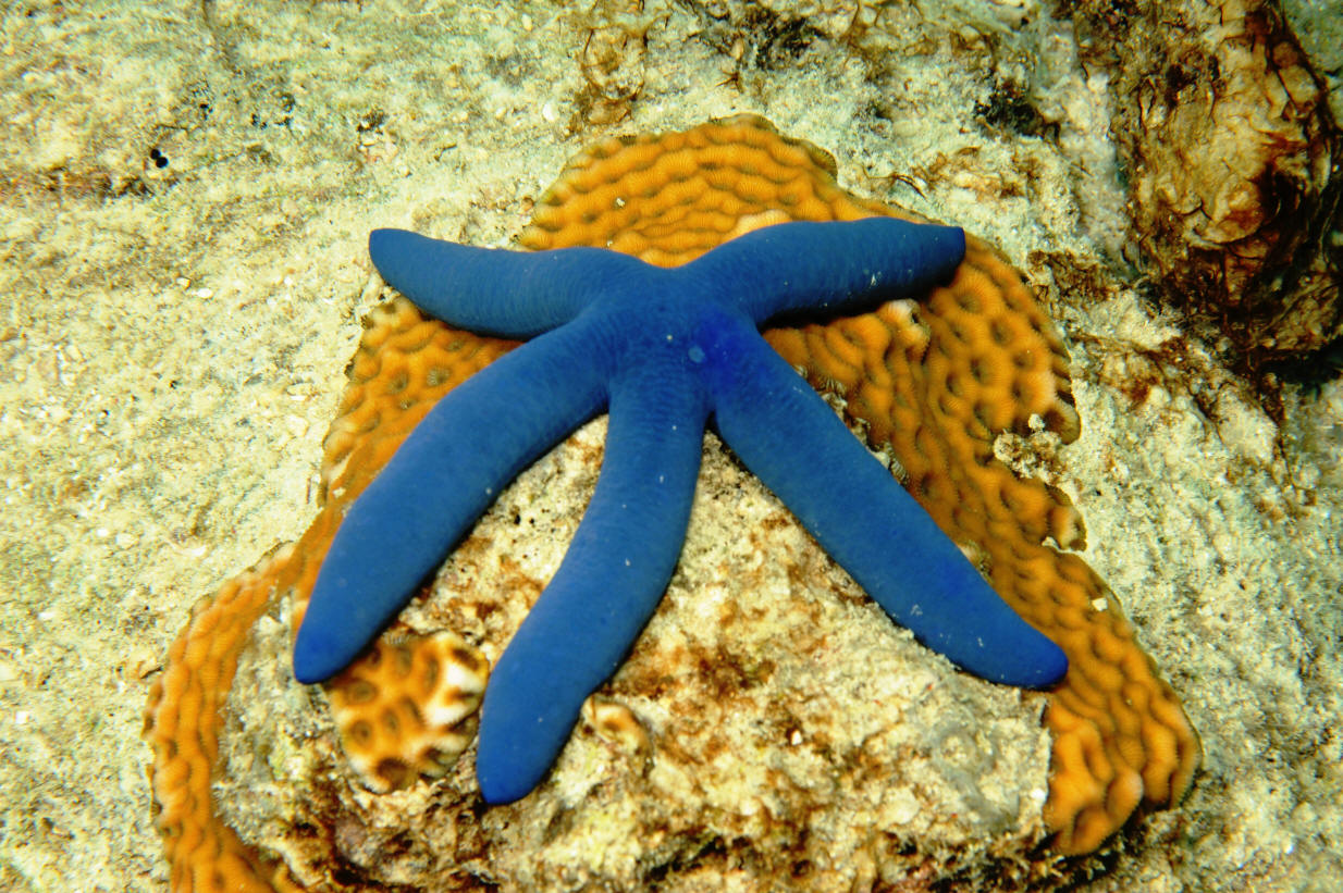 Linckia... Seastar. Blue one in Fiji. Also found in other colors,