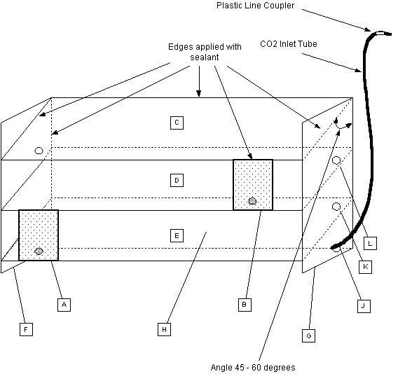 in writing. So kindly refer to sketches provided. Removing small triangular shaped pieces from top ends of Plexiglas hood pieces would make its upper edge contacting the Back Plexiglas piece , if you first finish off the units U shaped section. Once this section is bonded properly , then you can arrange the hood pieces and apply sealant to edges. I found that the slowly accumulating CO2 gas