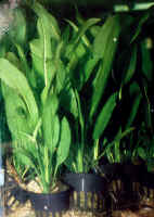 Bibliography/Further Reading: Baensch, Hans A. & Rudiger Riehl. 1993. Aquarium Atlas, v. 2. BAENSCH, Germany. 1212 pp. Brunner, Gerhard. 1973. Aquarium Plants. T.F.H. Publications, NJ. 159 pp. de Graaf, Arie. 1995. Collecting water plants in South America. Locating E. portoalegrensis Rataj in Southern Brazil. FAMA 9/95. de Graaf, Arie. Somatic chromosome numbers in Echinodorus (Alistamaceae) E. bolivianus and E. quadricostatus. FAMA 7/97. de Graaf, Arie. 1999. The validity of E. bleheri and E. parviflorus. FAMA 4/99. James, Barry. 1986. A Fishkeeper's Guide To Aquarium Plants. Salamander Books, U.K.. 117 pp. Gasser, Robert A. 1978. Echinodorus humilis. FAMA 5/78. Gasser, Robert A. 1978. Echinodorus peruensis. FAMA 7/78. Gasser, Robert A. 1979. Echinodorus species "Rosaefolia". FAMA 1/79. Gasser, Robert A. 1979. Echinodorus uruguayensis. FAMA 4/79. Gasser, Robert A. 1980. Echinodorus paniculatus var. rangeri. FAMA 1/80. Gasser, Robert A. 1988. Echinodorus undulatus. FAMA 10/88. Gray, Noel. 1996. Guide to the Amazon Sword Plants. The Aquarium Gardener 7:1/96. Kasselmann, Christel. 1994. Echinodorus schlueteri Rataj. The Aquarium Gardener 9-12/94. Paffrath, K. 1975. The Ruffled Swordplant (Echinodorus major). Aquarium Digest International. 3:4/75. Paffrath, Kurt. 1988. The six best Echinodorus species. Amazon plants in the aquarium. Today's Aquarium 1/88. Pon, Richard T. 1991. Broad leafed Amazon Sword Plant (E. bleheri). The Aquarium Gardener 4:5/91 Radford, Albert E. 1986. Fundamentals of Plant Systematics. Harper & Row, NY. 498 pp. Ranelli, Jack. 1986. The Melon Sword puts on a show. FAMA 8/86. Ranelli, Jack, Mayer, John (photos). The mighty sword. An attention getter. FAMA 7/88. Rataj, Karel. 1981. The Pygmy Chain Sword Plant, an easy to grow foreground plant. TFH 11/81. Rataj, Karel. 1988. The beautiful Echinodorus macrophyllus. TFH 7/88. Rataj, Karel. 1988.Echinodorus quadricostatus. TFH 10/88. Rataj, Karel. 1999. Echinodorus multiflorus. TFH 8/99. Raven, Peter H., Ray F. Evert and Helena Curtis. 1976 2d ed.. Biology of Plants. Worth Publishers, Inc., NY. 685 pp. Riehl, Rudiger & Hans A. Baensch. 1987. Aquarium Atlas, v. 1. MERGUS, Germany. 992 pp. Riehl, Rudiger & Hans A. Baensch, 1996. Aquarium Atlas, v. 3. MERGUS, Germany. 1103 pp. Roe, Colin D. 1967. A Manual of Aquarium Plants. Shirley Aquatics, England. 111 pp. Stemmermann, Lani. 1981. A Guide to Pacific Wetland Plants. U.S. Army Corps of Engineers, Honolulu. 118 pp. Stodola, Jiri. 1967. Encyclopedia of Water Plants. T.F.H. Publications, NJ. 368 pp.