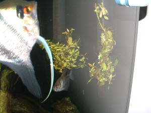 gravel filter 9/13/08 29G planted tank, aeration, stkg... 8/22/07 Hello. I have acquired a great deal of information from your website over the past few years, and would first like to thank you all for the amount of work you put into enlightening the masses. As your time is precious, I will try to keep this short and to the point. <Appreciate this> I currently have, among other tanks, a 29 gallon planted aquarium with a pair of 1.5" Corydoras trilineatus catfish and one golden angel. The tank was cycled before any creatures were added, and the water quality (with routine water changes) has tested with flying colors. The plants are java ferns (4), water wisteria (7), and moneywort (5). Without any injected CO2, aside from the fishes' respiration, the plants are growing well. I currently use an airstone at night when the plants are sucking up the oxygen instead of producing it, <Good technique> but I wonder if leaving it off during the day is jeopardizing the fish. <Mmm, doubtful> Should I keep the airstone running at all times, or would that drive out too much of the CO2, and stunt/kill the plants that I feel are so beautifully balancing my ecosystem? <Perhaps try this and see... there are folks who in recent times have poo-pooed the idea of CO2 being driven off thus...> Secondly, I've been adding fish slowly, and I wonder if I can or even should add any other fish. <The Angel may go after most anything new...> The three fish get along very well. The two cories are inseparable, and swim all over the place. The angel swims around like he owns the place, <Does> practically eats from my hand, and will also nibble at the sinking wafers right alongside the cories without any chasing or harassing. I am content with just letting this tank grow and flourish without adding any other life forms, but I am wondering if keeping only 2 cories is keeping them from the schooling on which they thrive, and if my angel gets lonely, as hard as that is to type, haha. <Does not get lonely I assure you... You are its company> I apologize if this email seems like I'm fretting without cause, but I truly love all of the fish I keep, and want to make their lives as pleasurable as they make mine. Thanks again! Thomas <Ahhh! Perhaps another Corydoras or two of the same species... they may spawn... Bob Fenner> Air Stones and Live Plants 8/1/07 I have thoroughly enjoyed spending some time with your website for the past several hours! Great stuff. I am getting back into the aquarist hobby after taking a 17 year hiatus! I am re-starting my 38 gallon tall aquarium set up with a Magnum 200 canister (still going strong). I would love to have live plants in the tank, but the last time (read 17 years ago), I remember having what I thought were circulation issues due to the depth of the tank. My LFS recommended a large air stone to help circulate the water. Now I read some of the FAQs and aeration doesn't seem to be a recommended practice for planted tanks. I would love your recommendation. I enjoy the serenity of some bubbles in a tank, so can I get away with some, but not a large stone? <Greetings. The deal with airstones, and indeed any form of turbulence in a planted aquarium, is that the splashing causes carbon dioxide (CO2) to leave the water. Since plants need this CO2 to thrive, when this is lost from the water, plant growth slows. In fact, serious plant growers use devices to *add* CO2 to the water and take care not to have any splashing that will cause the CO2 to be lost. To improve circulation, these tanks usually rely on pumps that move water about with the use the air bubbles. Any decent canister filter should provide enough circulation, but additional powerheads can be added if required. Regardless, in planted tanks, it is normal to *understock* the aquarium anyway, so water current is less critical than in a heavily stocked community tank. Bottom line: aim for good plant growth, or go for water with bubbles, but you can't really have both. Cheers, Neale> What filter media to load into two canister filters in a planted tropical tank. 5/15/07 Hi, I have settled on buying a 42" x 18" W x 24" H tank that will be freshwater and well planted. <Sounds nice. By my estimate, that's 297 litres.> For filtration I like the idea of combining heating with filtration and I though I might go with an Eheim 2324 Thermo Filter canister. I thought the 500l per hour filtration rate a bit low though so if I added a 2213 Classic, I'd have a combined rate of filtration of 890 litres /hour - or so the online store site I use tells me. <Yes and no. The estimates given to canister filters are optimal, and assume the filter is [a] empty and [b] place alongside, NOT below, the filter. As soon as [a] you put filter media in that flow drops, and [b] when you put it *under* the tank it drops further because the pump must now work against gravity ("head pressure"). Realistically, downgrade the quoted turnover by 25%. Anyone who's used a canister filter for long will notice turnover declining over time, as the filter clogs up. Mine probably get down to about 50% estimated turnover before I get round to cleaning them! Anyway, assuming you're keeping only small tropical fish like neons and danios, you'll need not less than 4x the turnover of the tank for optimal water quality. For a 300 litre tank, less 15% for the substrate, that's about 250 litres of water in the tank which means you need about 1000 litres per hour filtration. So your 890 litres per hour total using the "best possible" estimates from the manufacturers is somewhat less than idea. If you can, round up to around 1200 litres per hour filtration.> The Classic looks a simple thing with no inbuilt filter trays and difficult to prime so maybe I could use that as a 'pure' biological filter just filled with ceramic 'hoops' or similar and clean it (or rather carefully rinse half of it) with tank water not so often?? but how often?? <My father used a very similar filter on his reef tank. Th