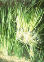 The many types of "bunch plants" offered seasonally in the trade. Make sure you get a tropical species (e.g. the foxtail, Myriophyllum brasiliense versus the colder water European milfoil, M. spicatum) when shopping for these plants. Many of the "anacharis's offered (Egeria, Elodea, et al.) do not do well in hot water. The point is well made; get cold water plants for cold water systems and warm water ones for tropical tanks. One brief note regarding the nefarious practice of selling 'house' and 'bog' plants (and worse) in the trade. There are several types of plants offered to aquarists that just don't live underwater. How to avoid these? Trust your retailer, find another, or read up. These are, of course only a brief smattering of what's available. If your favorite Editor will allow, we'll continue this series with much more in depth pieces on topics and types of plants in ensuing articles. Finish: The Big Picture: Overall, aquatic plants aid in stabilizing a system and keeping it that way. If your tank or fish bowls chemistry is way off, plants will help condition it, bringing it back toward center. Plants provide habitat, food, reduce aggression, and hey, they're beautiful and fun to grow. Plastic plants may do a lot of this, and live plants are not absolutely necessary; but having some live plant material in your system will greatly add to your success as an aquarist and the health and happiness of your livestock. Bibliography/Further Reading: Arnold, Larry. 1988. Anyone Can Grow Plants. Fish Tales 2/88. Barnes, Doris. 1956. Aquarium Gold. TFH 11,12/56. Fenner, Bob & John G. Pitcairn. 1989. Retailing Aquarium Plants: 4 Part 1: Rationale, Buying Keeping; Part 2: Maintenance & Merchandising; Part 3: A Good Selection. Pet Dealer 9,10,11/89. James, Barry. 1986. A Fishkeeper's Guide to Aquarium Plants. Salamander Books, Tetra Press. Kowite, William J. 1981. Plants in the Aquarium. FAMA 9/81. Osborne, Kevin. 1992. Hands Off, Planted Aquariums---Revisited. FAMA 7/92. Rainey, Arthur D. Jr. 1991. Live Plants, To Increase Customer Demand for Plants, Emphasize Their Beauty and Benefits. Pet Age 4/91. Roe, Colin D. 1967. A Manual of Aquarium Plants (a classic). Shirley Aquatics Ltd., Shirley, Solihull, England. Seidner, Sam. 1953. On the Function of Plants in the Aquarium TFH 1:4/53. Tepoot, Pablo. 1998. Aquarium Plants. The Practical Guide. New Life Publications. Homestead, FL. 216pp. Watson, Thomas T. 1983. Beginning with Living Plants. T.F.H. 8/83.