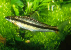 Environmental: Conditions Habitat Crossocheilusand Epalzeorhynchus live in streams of moderate water movement amidst plant-filled stream edges. They appreciate current and rock/wood strewn planted confines as well. Chemical/Physical None of these fishes proves touchy to a wide range of water conditions given initial health and proper acclimation. Temperatures in the seventies to low eighties, pH 6.5-7.5, to moderate hardness is fine. Biology/Other As seems reasonable with so many species living in such close, complex relationships developed over such long geological periods of time... there is a Crossocheilus minnow (C. cobitis (C. pseudobagroides is a synonym)) that is a mimic of a catfish (Pelteobagrus ornatus, Family Bagridae); a form of Batesian mimicry where the minnow apparently accrues a non-predatory advantage by appearing like the less tastey, more spiney bagrid cat. Filtration Should be brisk, rendering good, clear oxygenated water and a pleasing current. My favorite choices are outside canister and inside power filter types of size that can be used without allowing "jump-out" gaps at the systems top. Display For best showing, both flying foxes and SAEs should be maintained in a (large) well-planted system in a small grouping (3,5,7...). You will find they shoal loosely, working algae over often resting in a loose troupe. Without having to resort to moving your SAEs, place them at no more than one per 15 gallons. Behavior: Territoriality Both SAEs and flying foxes can be or become quite antagonistic toward their own and related species. For this reason they should all be placed simultaneously and not overcrowded. I stand by my suggestion of about one per 15 gallons maximum for SAEs. Epalzeorhynchuscan become true tyrants of a system with growth, much like the minnow "sharks" of the genus Labeo. I would not attempt more than one in a system of less than thirty gallons, and then keep my eyes on them. Other minnow "sharks" as mentioned can become terrors in their own right. Either keep them apart from these algae eating minnows or be on your guard should harassment turn to war. Introduction/Acclimation If I haven't made the point clearly enough, let me restate it here, THESE FISHES JUMP OUT! In addition to making sure your aquarium lid is complete, it is a very good idea to lower the water level a few inches the first week or so, to prevent exuberant "flying" out of the aquarium and onto the floor. This cautionary remark applies to mere netting and transport of these fishes as well. How many times have I heard/seen them bolt from nets, bags, specimen containers, buckets...? Too many. Predator/Prey Relations Ready to give the boot to all those armored South American sucker-mouth cats variously called plecos/plecostomus, whiptail, twig cats, (Family Loricariidae)? Not so fast, bucko. A notable trait of all the minnow members and the Chinese algae eater is their palatibility; humans eat them and so will your larger, piscivorous fishes. Should you have large cichlids, other wide-mouth fish-eating livestock, you may well have to stick with that ugly pleco, or scrape algae yourself. Reproduction, Sexual Differentiation: As for many minnow species, Epalzeorhynchus and Crossocheilus show little external difference between the sexes. Females are slightly fuller and overall larger during spawning season. Locomotion: All these fishes have poorly developed gas bladders and thus either swim in constant motion, often at a pronounced angle, or rest utilizing their mouth and paired fins on plants, other decor or the bottom. Feeding/Foods/Nutrition: Types, Frequency, Amount, Wastes Though all the fishes listed here will do some work on keeping algae in check, with the best to worst being Crossocheilus, Epalzeorhynchus, Gyrinocheilus, all will learn to take "regular" types of fish food. You should take care to just provide enough to their tankmates, as these facultative algae eaters can and will become lazy cleaner-uppers should other fare be more available. Should your system be too clean, intentional green food should be offered. True SAEs rarely do real damage to live plants as they cleanse them of debris and algal growth, but some aqarium gardeners endorse the use of "feeder" soft floating plant material (Lemna, Limnobium) for ready munching. Close: The best algae eaters, bar none, for the planted freshwater aquarium are members of the genus Crossocheilus, the true SAEs. The biggest barrier to their use is finding and differentiating them from the far more common Epalzeorhynchus and false SAEs. The small South American Otocinclus are also excellent algae eaters for plant tanks, but more touchy and limited in their tolerance to captive water conditions. For aquariums without plants or with large fish-eating tankmates, the armored catfishes of the family Loricariidae still rank supreme. The misnamed Chinese algae eater Gyrinocheilus should either be left in the wild or relegated to "feeder" status. It becomes a bogus cleaner and outright peaceful-fish-killer as it grows. Bibliography/Further Reading: Baensch, Hans A. & Rudiger Riehl. 1993. Aquarium Atlas, v.2. BAENSCH, Germany. 1212pp. Banarescu, Petru M. 1986. A review of the species Crossocheilus, Epalzeorhynchos and Paracrossocheilus (Pisces, Cyprinidae). Travaux Du Museum d; Histoire Naturelle "Grigore Antipa". v.28, 141-161. Boruchowitz, David E. 1999. Good fish, bad fish (the Chinese Algae Eater). TFH 4/99. Castro, Alfred D. 1996. Algae al fresco: Exactly which algae eater really likes to chomp down on this stuff? AFM 12/96. Fenner, Bob. 1994. Guerrilla acclimation methods, or acclimating: My way. FAMA 10/94. Frank, Neil & Liisa Sarakontu. 1995. Algae eating cyprinids from Thailand and neighboring areas (Crossocheilus). The Aquatic Gardener 8(2):3,4/95 and AFM 4/96. Hunziker, Ray. 1992. The sharks that aren't. TFH 4/92. Kutty, Vinny. 1993. Algae eaters. The Aquatic Gardener 6(3):5,6/93. Nelson, Joseph S. 1994. Fishes of the World, 3d ed.. J